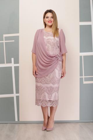 Описание:Платье полуприталеного силуэта с притачной пелериной по переду и спинке, рукав втачной 3/4.